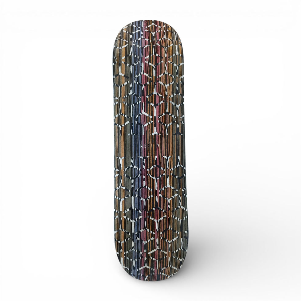 La singularité de l'Atelier Merlin Skateboards réside dans l'utilisation de placages de finition maximisant la durabilité de chaque planche et offrant un rendu visuel original et authentique au fil du bois.